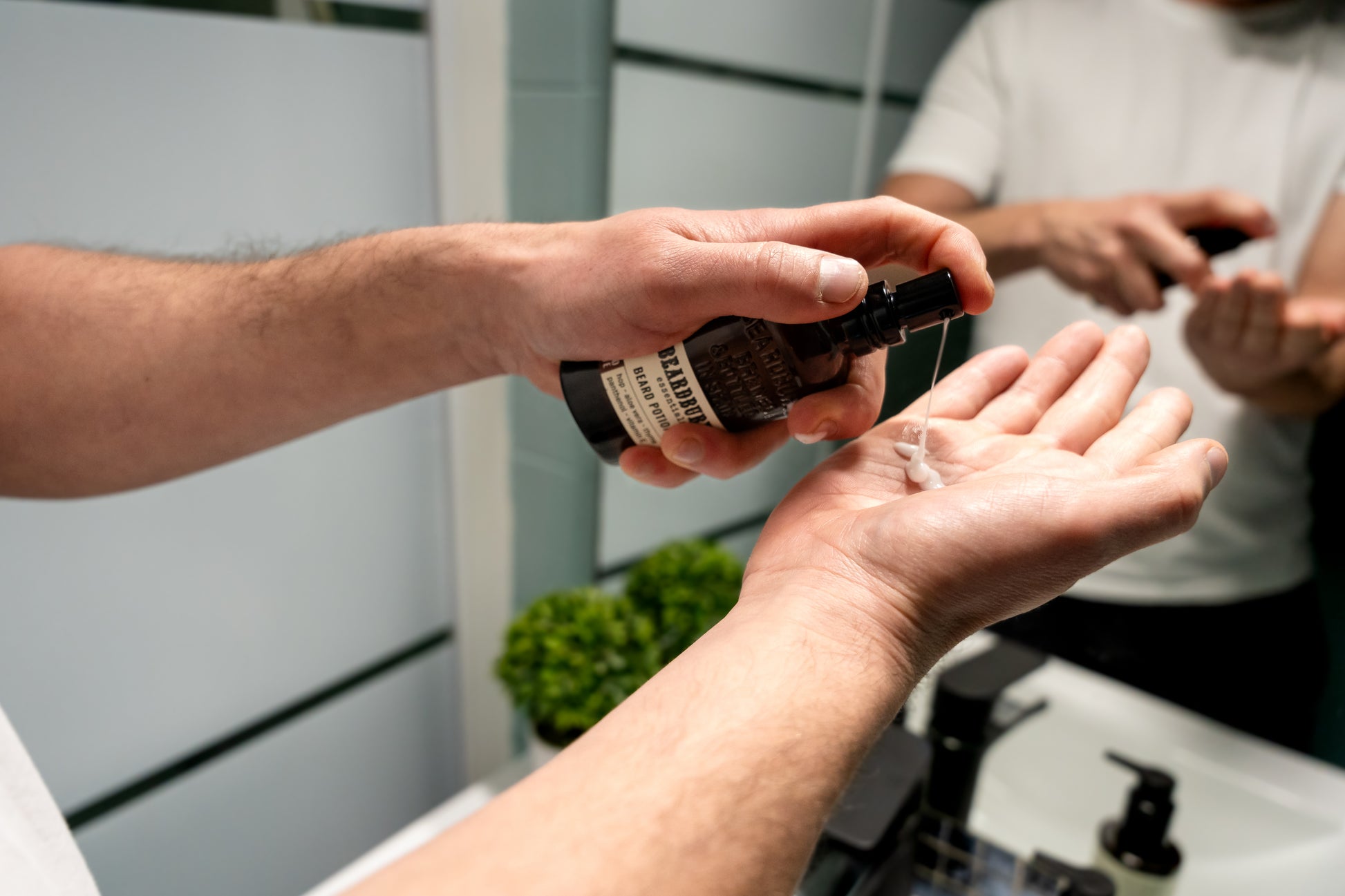 Mit kreisenden Bewegungen einmassieren, damit das Beard Potion gut einzieht und Hautschuppen sowie Reizungen vorbeugt.